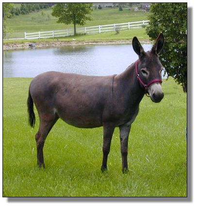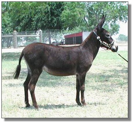 Rich brown in color, good bone, this friendly two year old jennet is ready to breeze into your life. Breeze brings a solid "My World" dark sorrel and dark brown background beginning with Buster on her sire's side. Her dam's side is predominately dark brown, although her dam, Cocoa, and her maternal grand sire, Little Tyke, have produced black. Think about how this nice, well built, friendly jennet, with a good breeding future, would fit in with your herd.