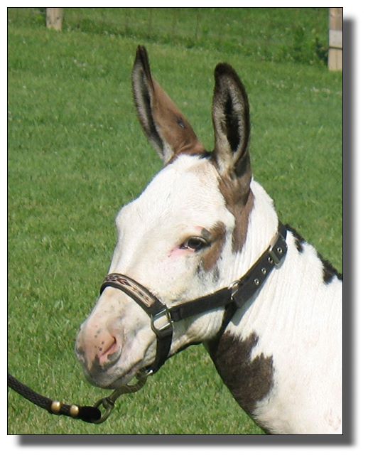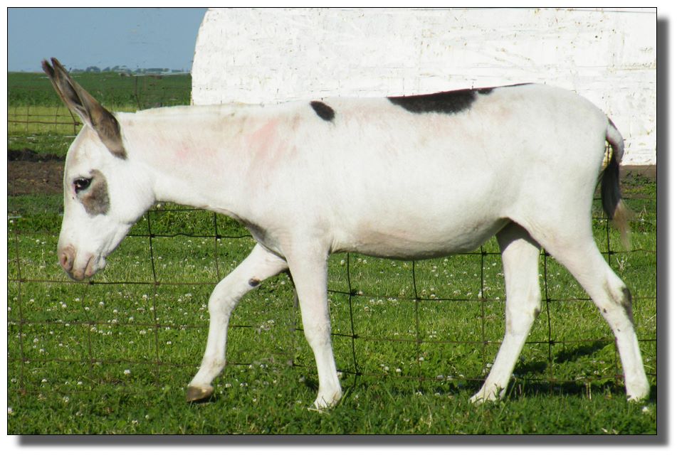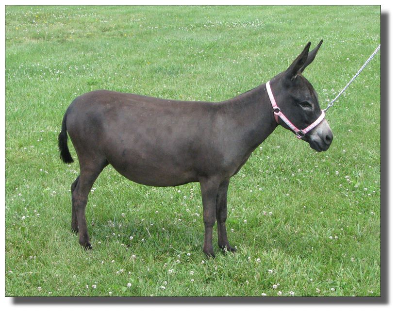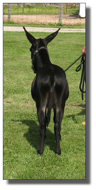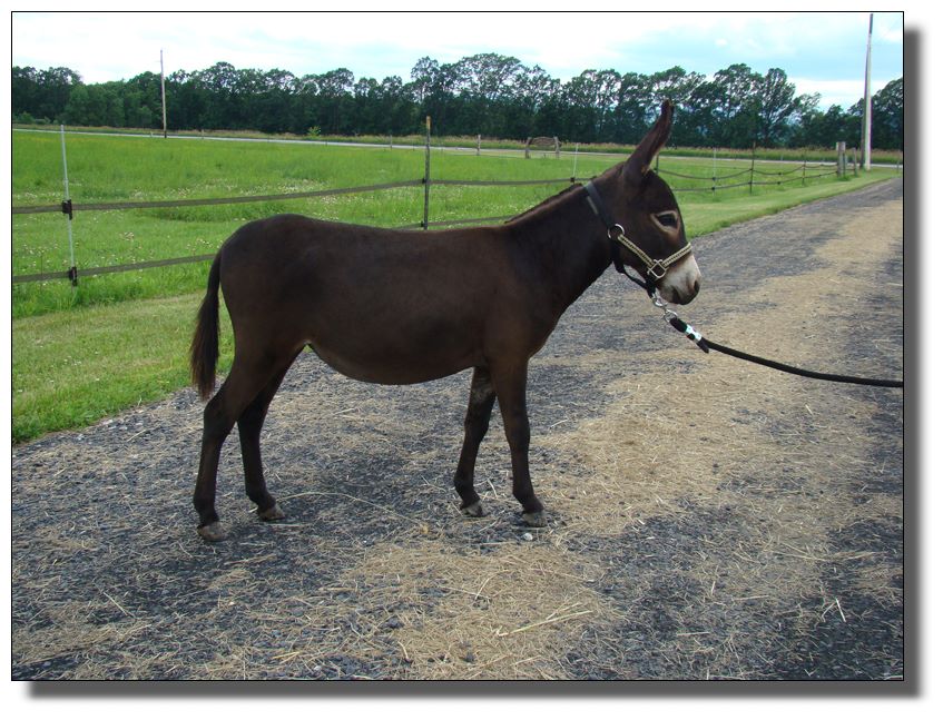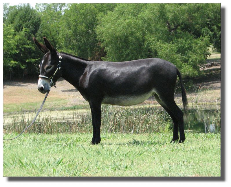 Aggie has the color, conformation, and size to be a great asset to most herds. If we kept her, we would probably breed her to a spotted jack and try for a black and white spotted foal. She has a very nice pedigree and great potential. Don't pass her up.