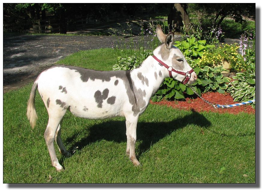 Zeva's a nice spotted jennet that will be well over a year old at Sale time. Her pedigree is filled with blacks and spots and includes a variety of well known genetic lines. Sir Prize has sired a lot of very nice foals for us and Zeva is no exception. She will make a nice addition to anyone's breeding program.