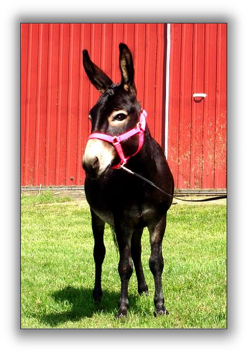 Sugar Fire is a daughter of the legendary Fireman! She has a beautiful head, straight legs, and a nice round rear end. Sugar has a gentle disposition, and is easy to handle. She produced a beautiful red foal in ‘06. Tickled Pink is sired by HHAA Riff Raff (Dark Red by PGF Peppercorn Jack, out of Windcrest Copper Penny). Riff placed 3rd in Foals to Halter at the ‘03 Great Mule and Donkey Show, and 6th in ‘04. Sugar Fire sells open to breed to your jack.