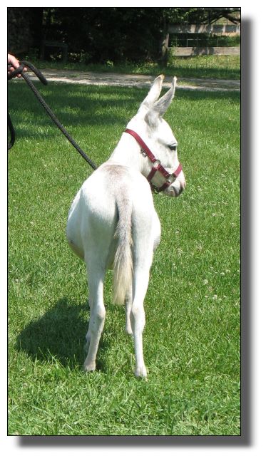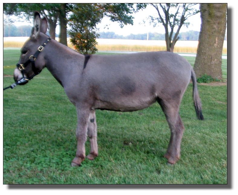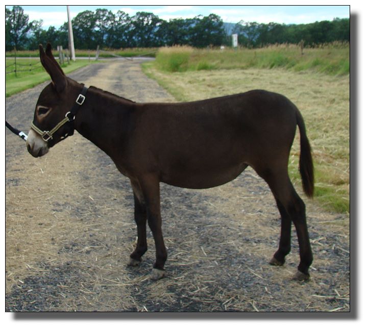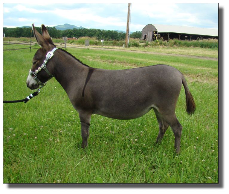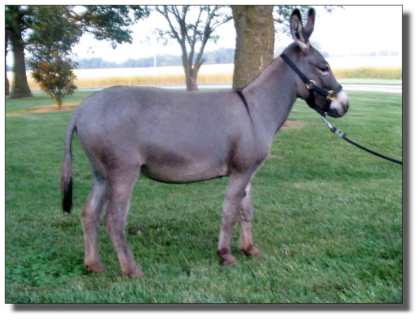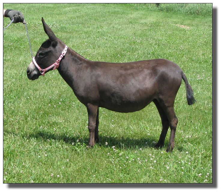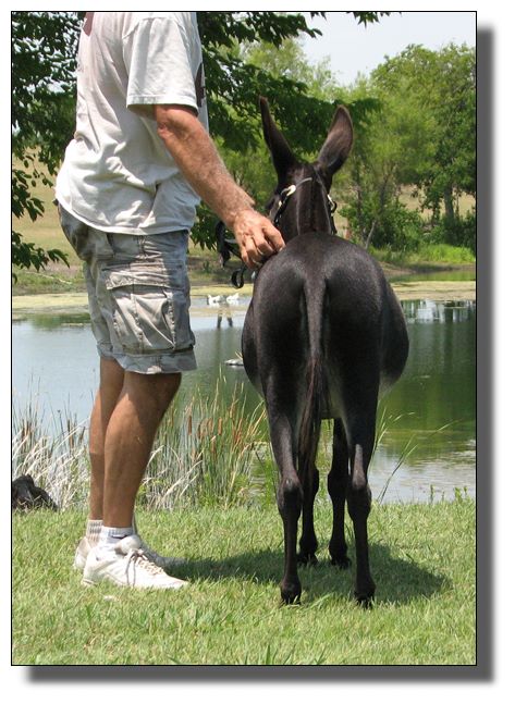 Aggie has the color, conformation, and size to be a great asset to most herds. If we kept her, we would probably breed her to a spotted jack and try for a black and white spotted foal. She has a very nice pedigree and great potential. Don't pass her up.