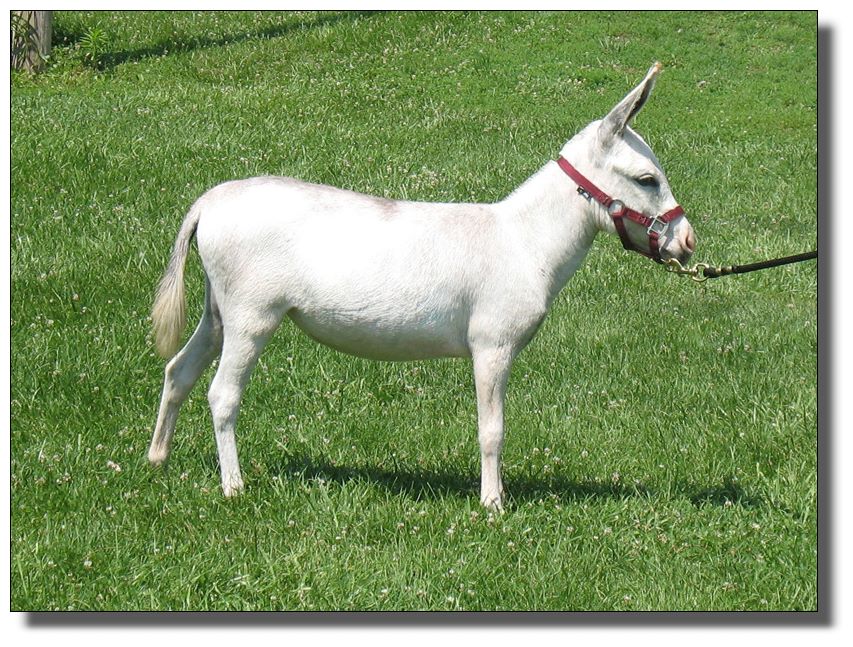 We really like this little jenny. She is short, wide and correct. Forget the color look at the conformation and size. Justa Joy will enhance any herd.